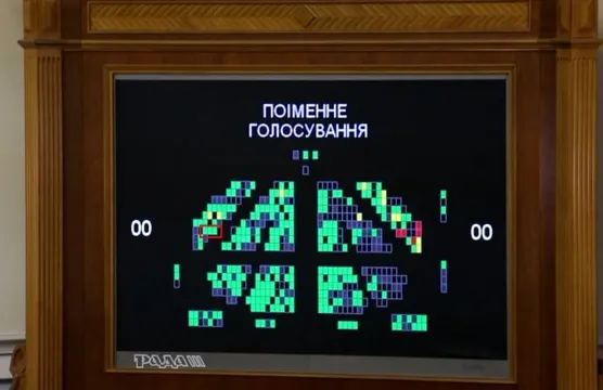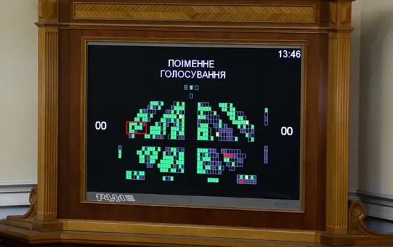 А на табло поименного голосования системы "Рада" видно, что пустое место слева от депутата проголосовало.