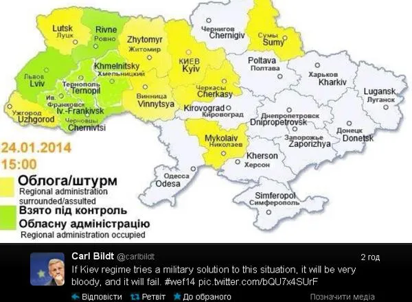 "Если режим попытается принять силы в такой ситуации, то это будет кроваво, но он проигрывает ", - написал Бильдт.