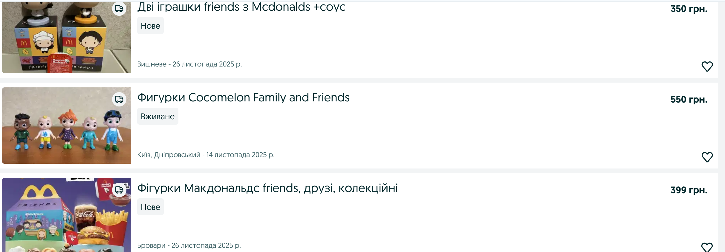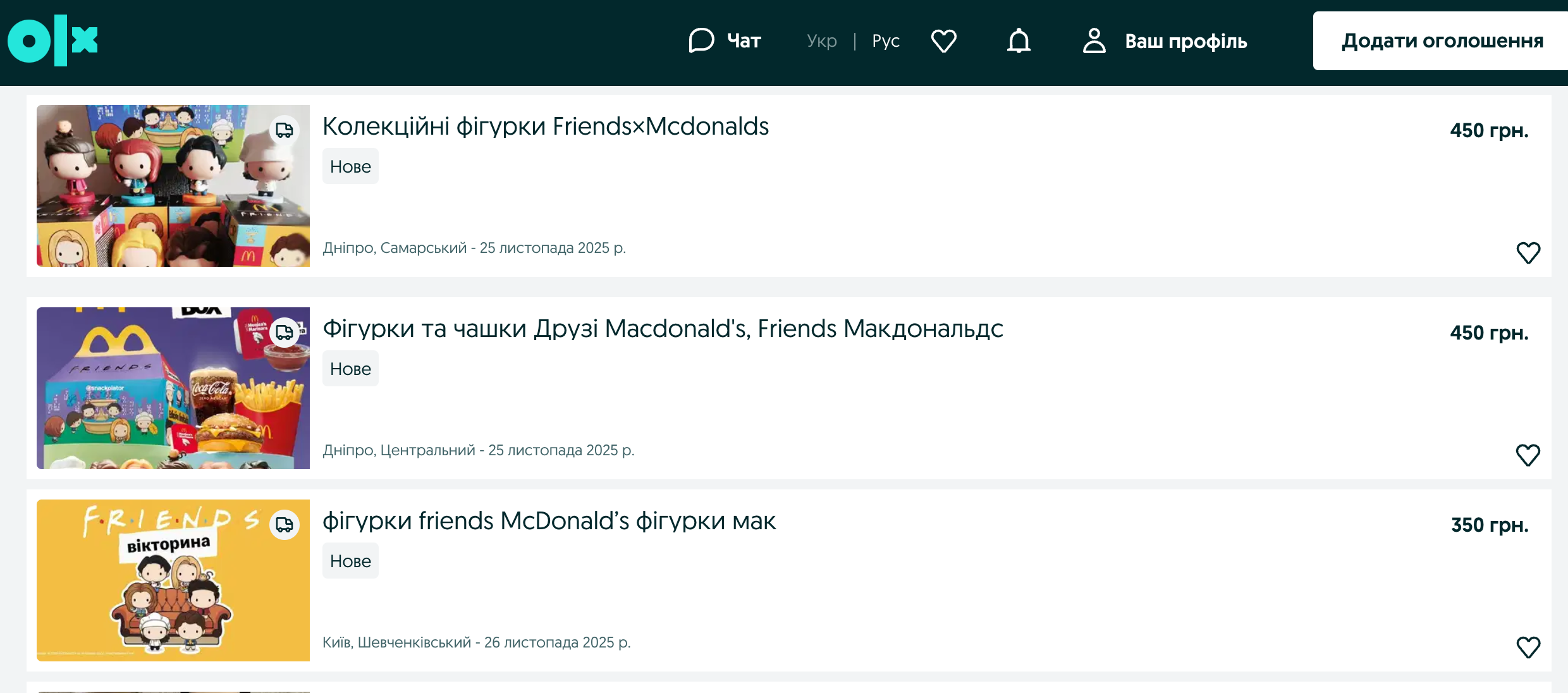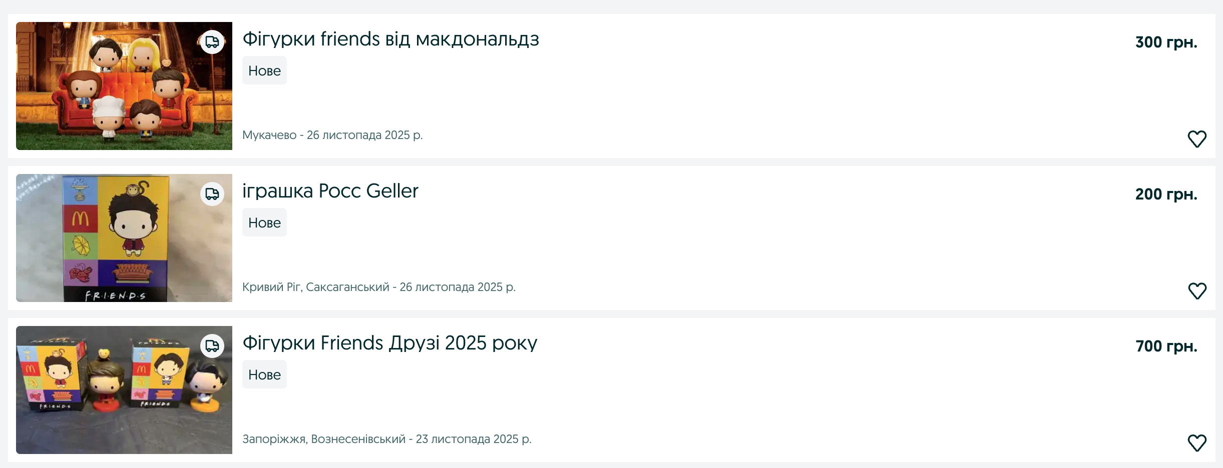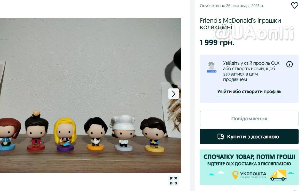 На OLX можно встретить различные предложения – как только одну фигурку, так и целую коллекцию. Кто-то продает полочку для них, а одно предложение даже включает в себя авторский соус Моники Гелер – маринара с базиликом, который McDonald's кладет к заказу.