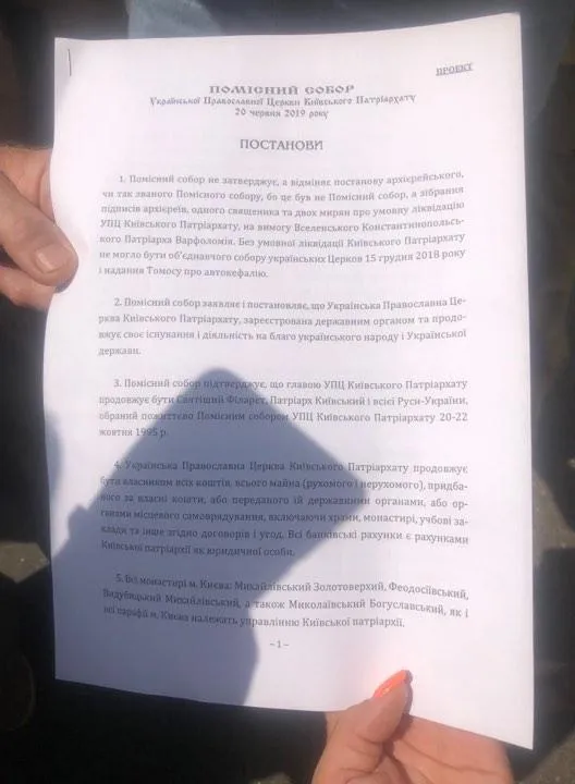 Постановление Филарета о восстановлении УПЦ КП / фото Виктории Кутьиной (24 канал)