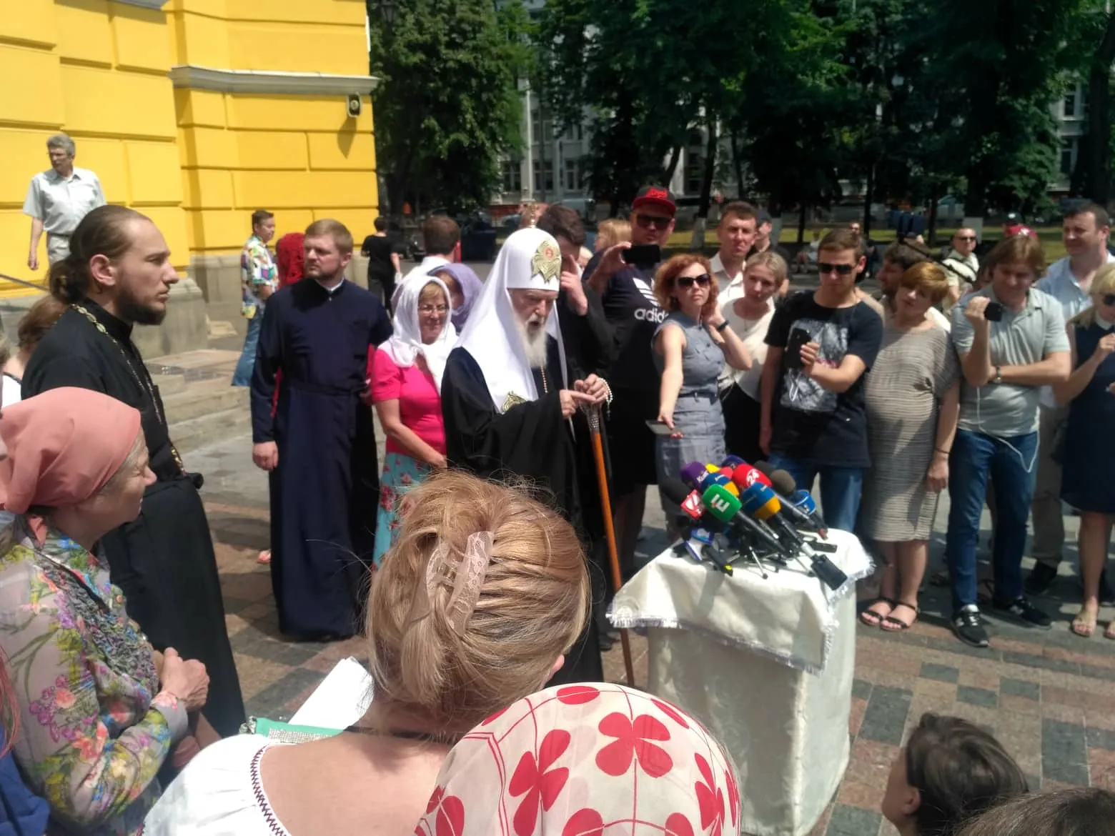 Филарет на брифинге рассказывает о восстановлении Киевского патриархата