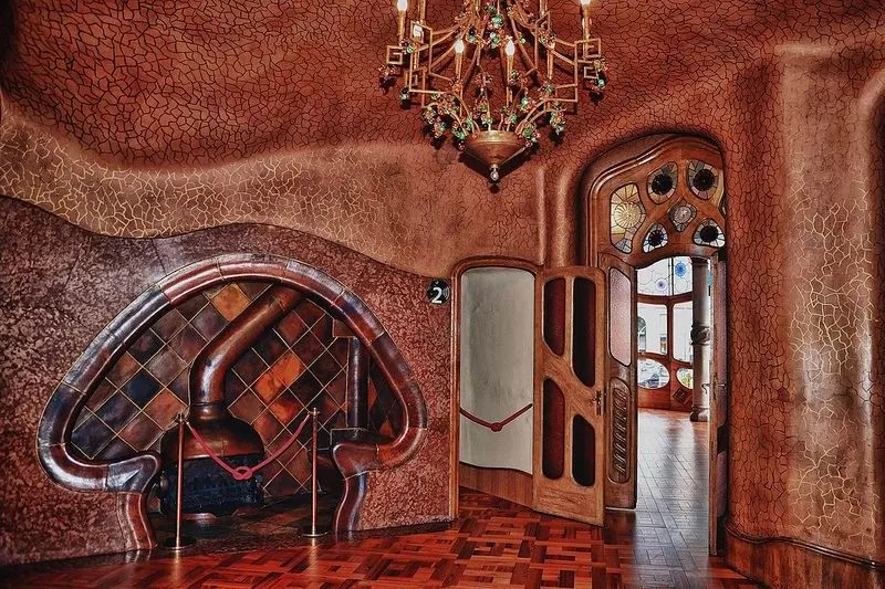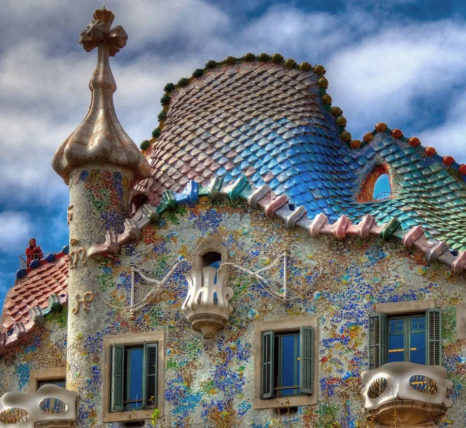 Грандиозные замыслы Гауди воплотил с помощью сюжета – Святой Георгий убивает дракона. Так, перекрытия на стенах первых двух этажей напоминают кости и скелет дракона, фактура фасада – его чешую, а крыша выполнена в форме его позвоночника.