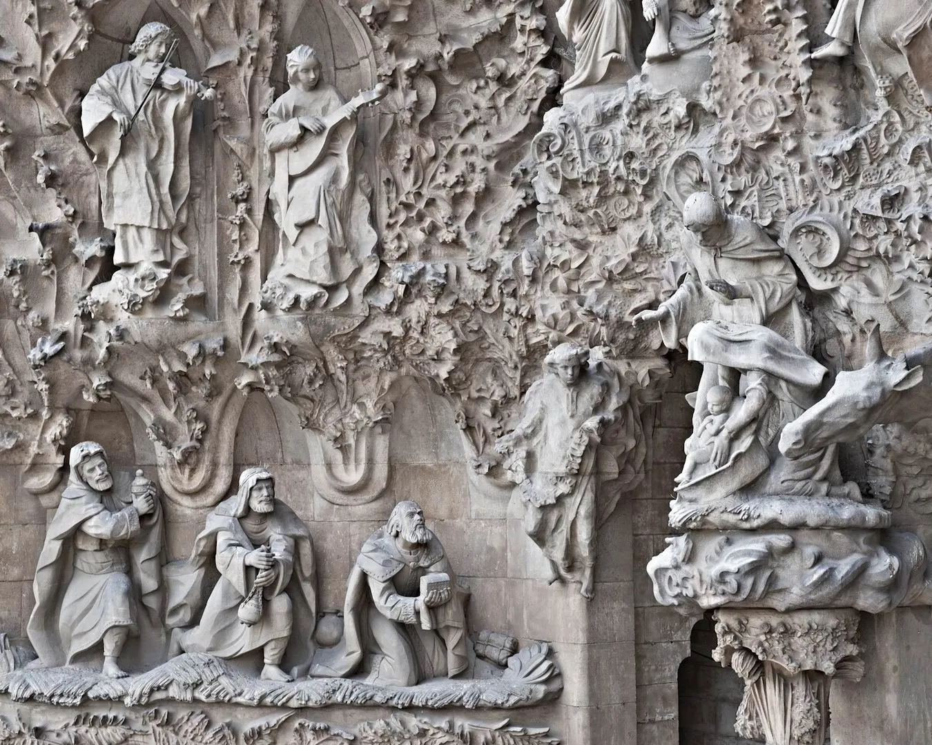 Несмотря на то, что Гауди работал над собором 43 года (до самой смерти), он успел построить и оформить только Рождественский фасад и четыре башни над ним. Отчасти это произошло и потому, что строительство неоднократно замораживали из-за нехватки средств.