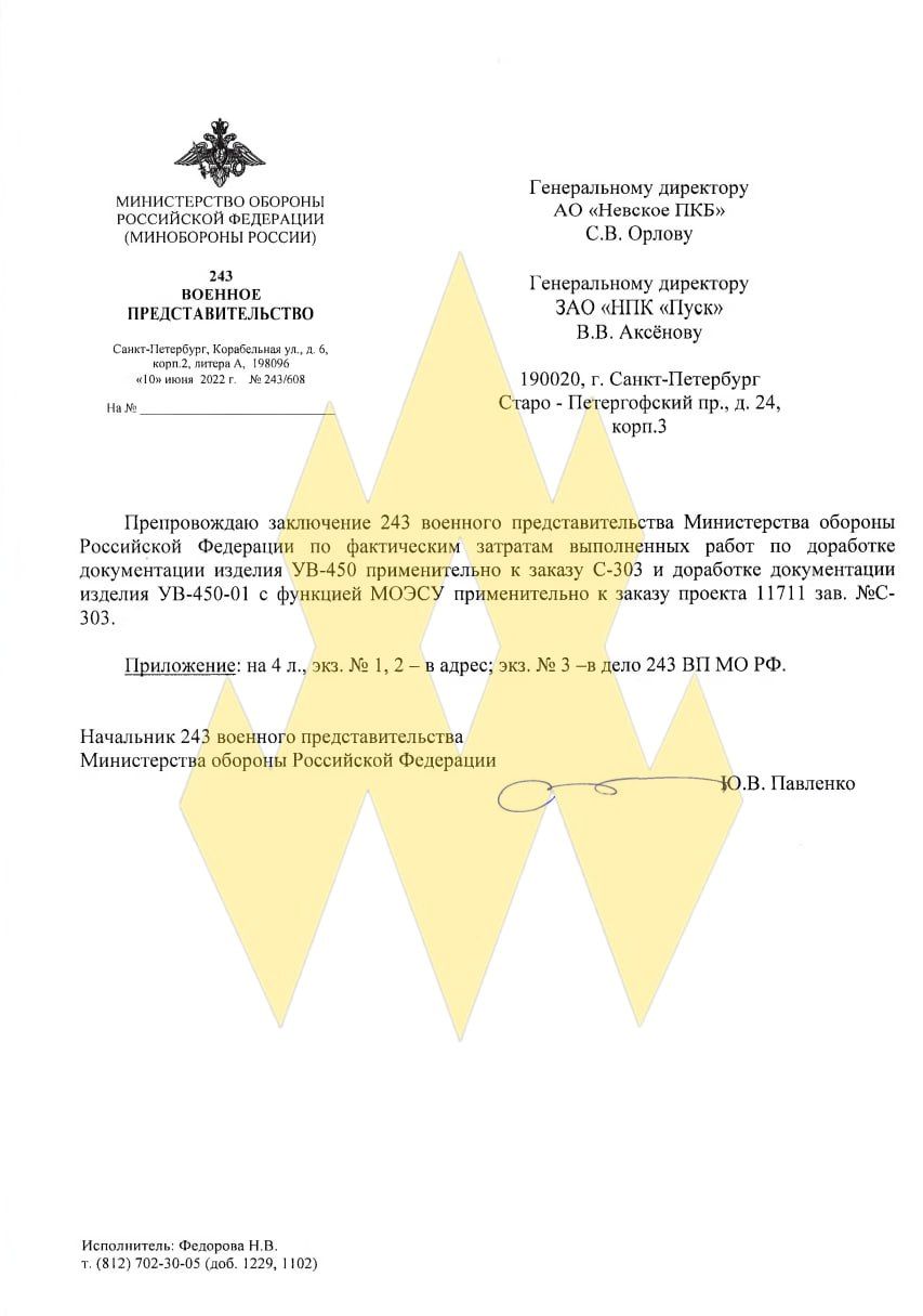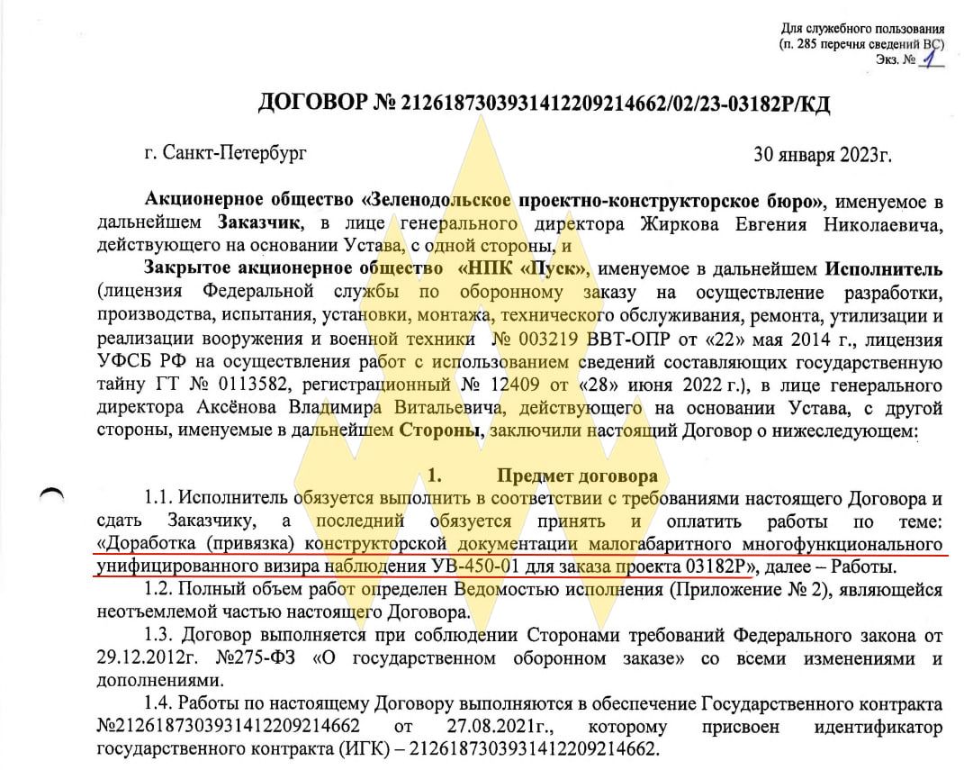 Материалы касаются комплектующих российских кораблей. В частности, они содержат технические характеристики обновленного корабельного прицельного прибора "УВ-450-01".