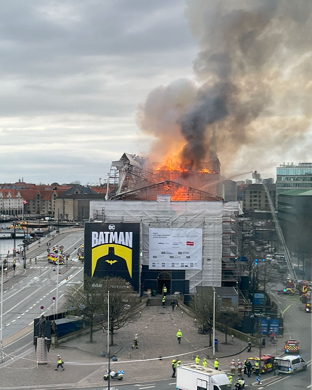 В столице Дании Копенгагене утром 16 апреля вспыхнул масштабный пожар в историческом здании Старой фондовой биржи. Огонь быстро начал распространяться, поэтому здание эвакуировали, а территорию рядом – оцепили. Также правоохранители перекрыли мост Книпельсбро в обе стороны.