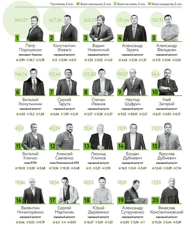 Отметим, в рейтинге Forbes народными депутатами не являются только трое участников: мэр Киева Виталий Кличко, президент Петр Порошенко и губернатор Николаевщины Алексей Савченко.