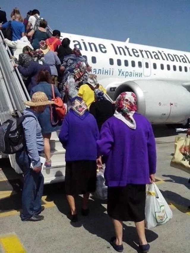 Соответствующее фото опубликовал журналист и блогер Сергей Гришин в своем Facebook. На фото видно, как несколько пенсионерок с пакетами и сумками ждут посадки в международном аэропорту "Борисполь".