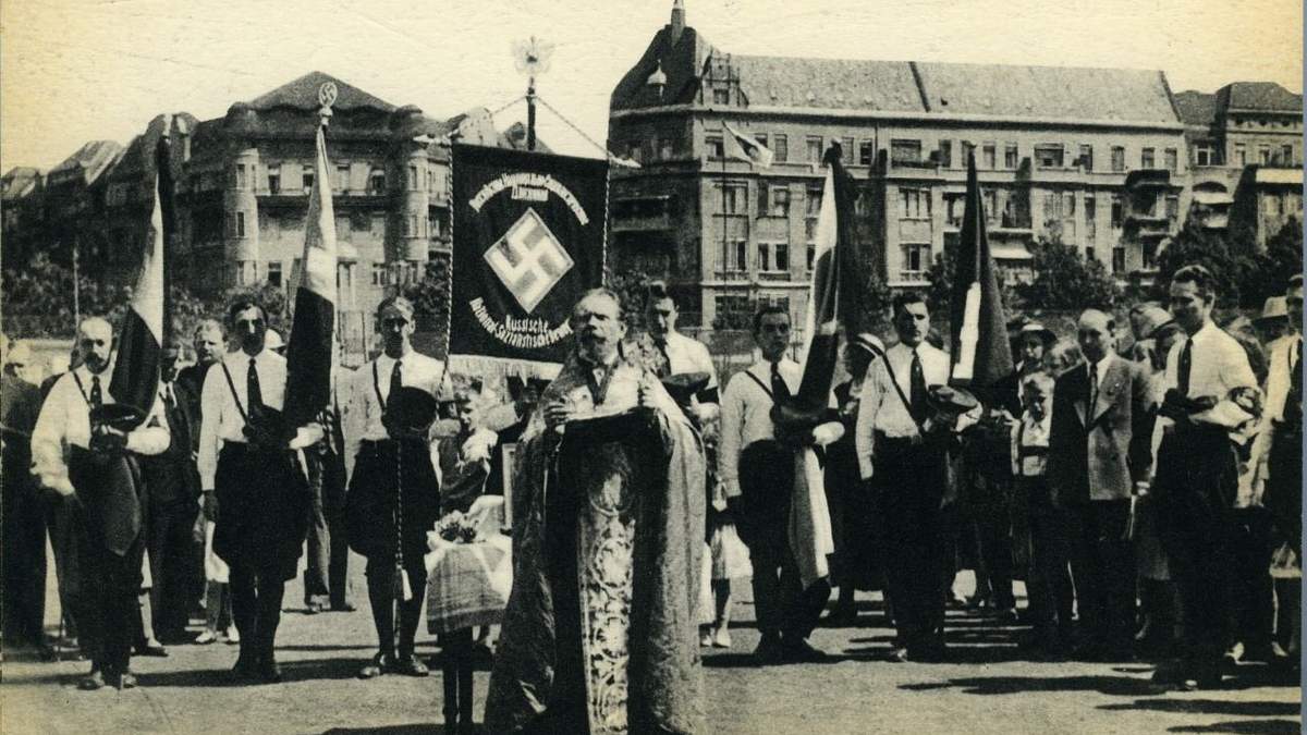 Генерал Бломберг с представителем Франции и русские, благословенные попом в муниципальном парке / Иллюстрация "Берлин" / Cameralabs