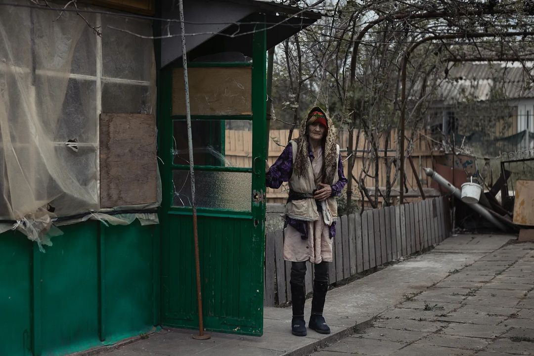 В сети показали фото 94-летней женщины из села Веселое. Женщина пережила российскую оккупацию, хотя захватчики пытались цинично сделать живой щит из ее дома.