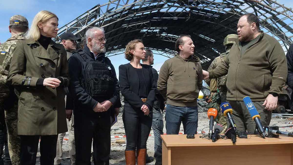 Месяц назад в Украину в знак поддержки приехали спикеры парламентов Румынии, Северной Македонии и Швейцарии. Вместе с председателем Верховной Рады Русланом Стефанчуком они посетили освобожденные от российских оккупантов Гостомель и Ирпень.