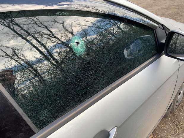 Фото последствий обстрела автомобиля украинских журналистов на Донбассе