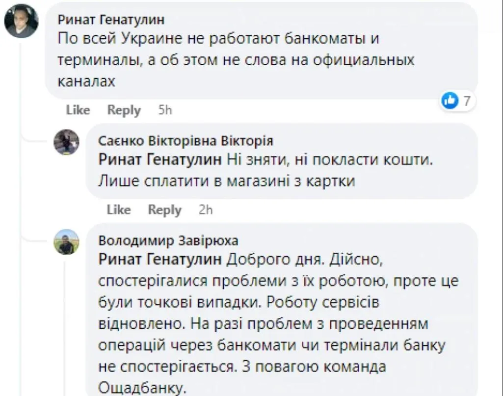 Впоследствии в "Ощадбанке" сообщили, что стали жертвой DDoS-атаки. В то же время в банке отметили, что все системы защищены и работают в штатном режиме.