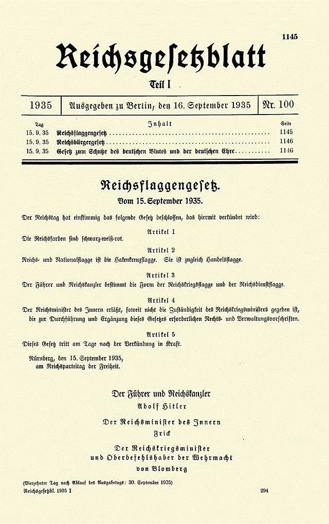 Офіційно, від 1 квітня 1933 почав діяти так званий бойкот євреїв. Почалась наступна хвиля расових законів, спрямованих на євреїв, які працювали в державних установах. "Нюрнберзький закон" від 15 вересня 1935 року поклав кінець рівноправності євреїв у Німеччині та визначав єврейство в расових термінах.