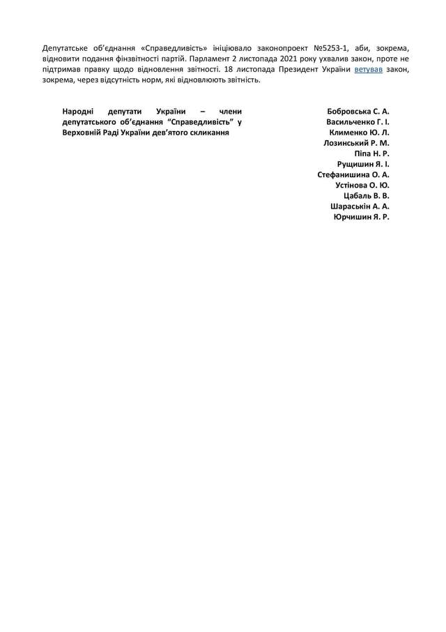 Читайте больше В "Голосе" заявили о приостановлении госфинансирования партии и обратились в НАПК