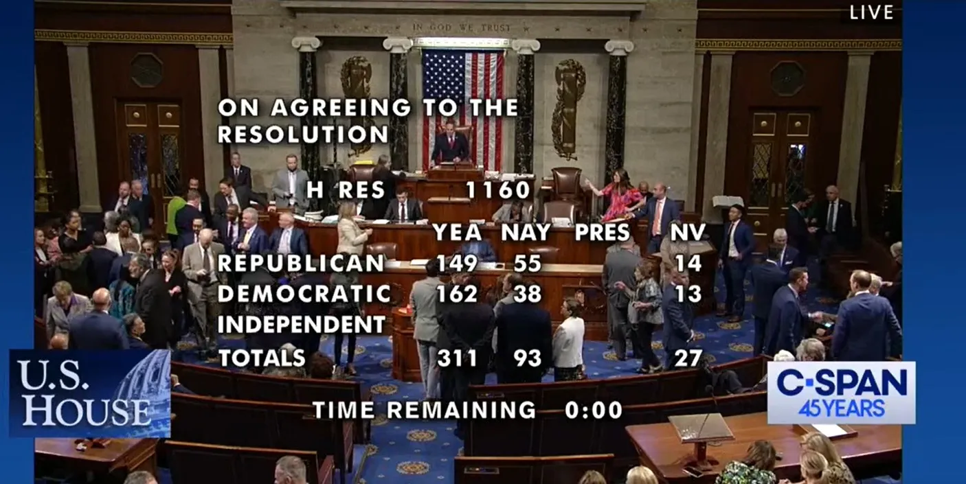 Процедуру поддержали 316 членов нижней палаты Конгресса США. Среди них 164 демократы и 149 республиканцев. Против высказались 94 члена, большинство которых – республиканцы.