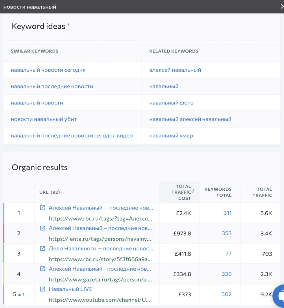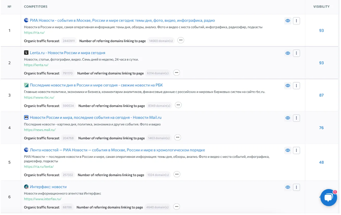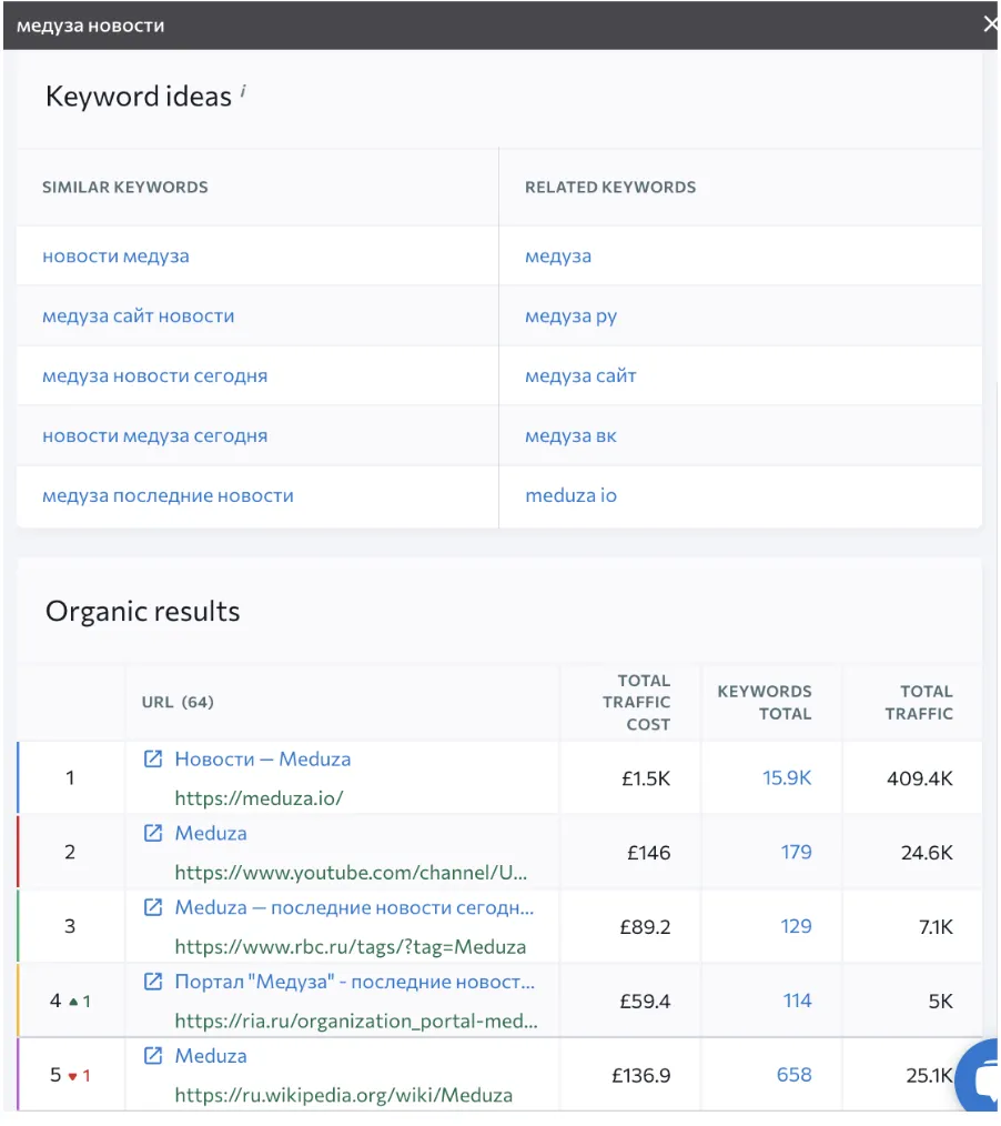 Это подтверждают специализированные профессиональные аналитические платформы, к примеру, SemRush, Ahrefs, SeRanking. В то же время как из небольшого числа условно оппозиционных изданий на первой странице Google не предлагает ни одного, а в конце второго десятка на второй-третьей странице поисковой выдачи может появиться лишь "Медуза".