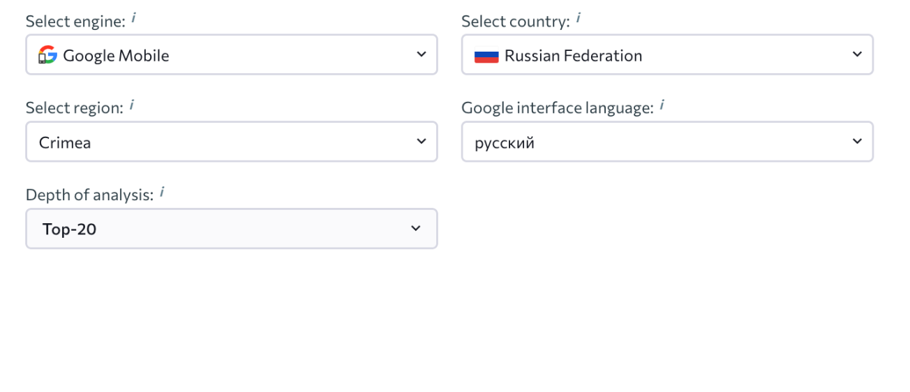 К слову, платформа Seranking позволяет выбрать Крым как регион РФ. Надеемся, что это досадная ошибка со стороны компании, у которой офис в Киеве.