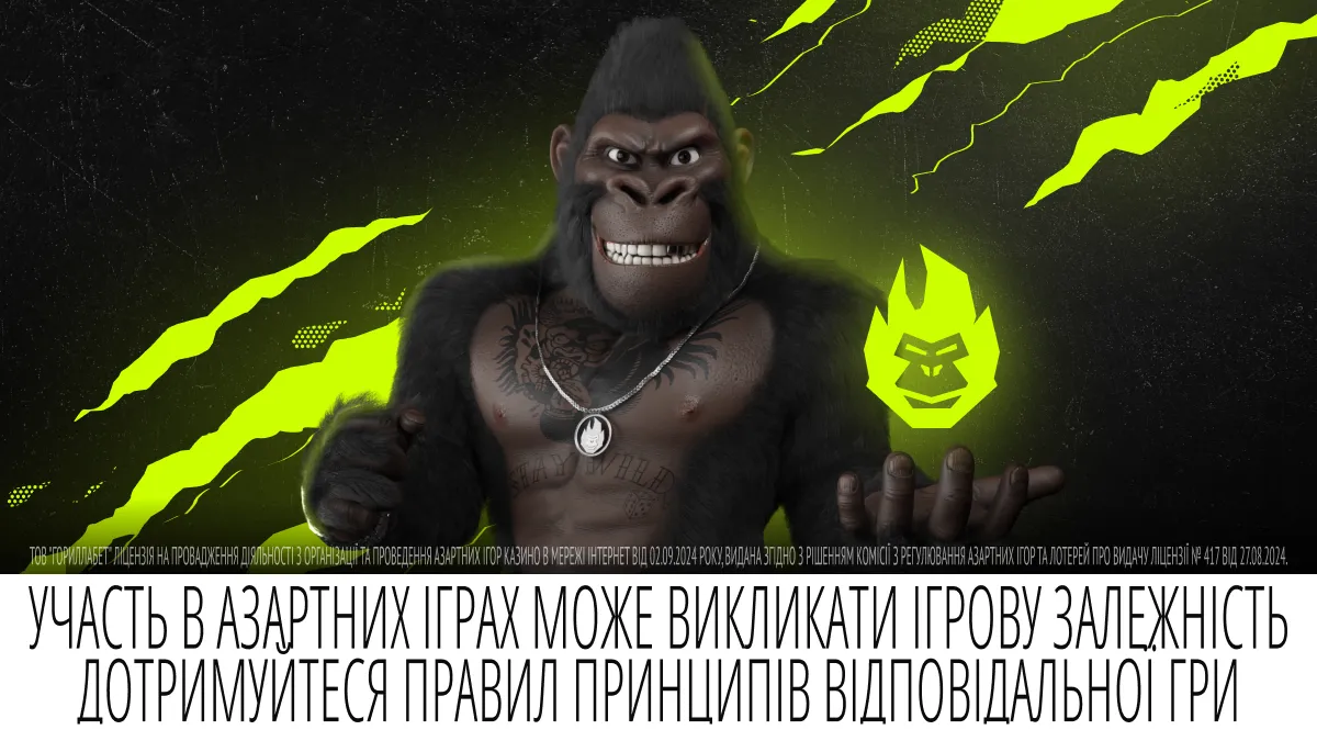 ООО "ГОРИЛЛАБЕТ" строго придерживается требований действующего законодательства Украины внедряя политику “Responsible Gambling” (Ответственной игры), направленную на защиту прав игроков и обеспечение безопасной, честной и контролируемой игровой среды.