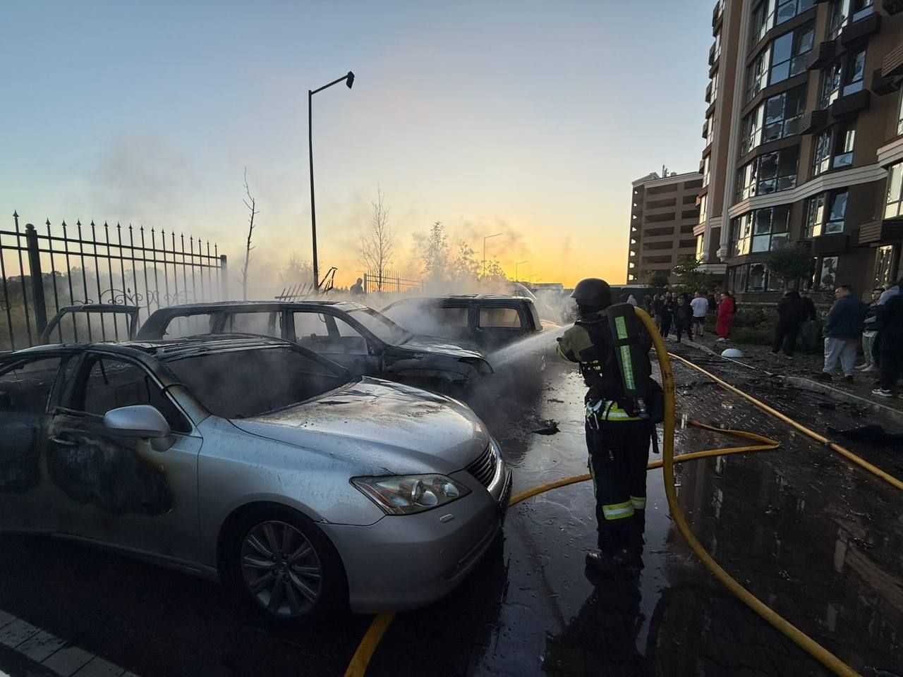 - в Бучанском районе в результате атаки уничтожено 5 автомобилей, еще 8 повреждены, выбито остекление в многоэтажном доме;