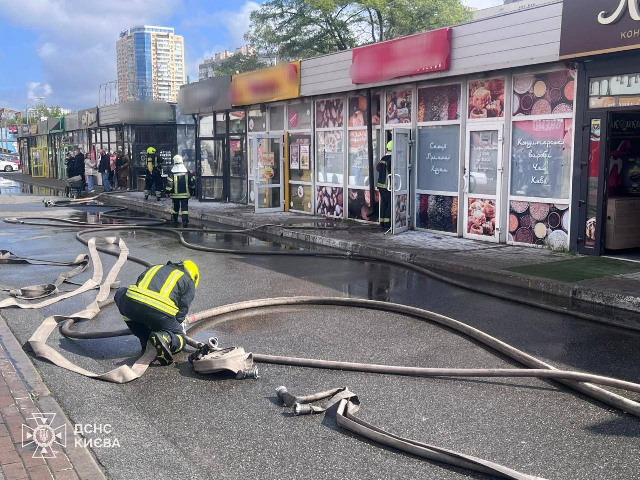 Позже в ГСЧС уточнили, что 11 мая в 08:52 поступило сообщение о пожаре на проспекте Петра Григоренко в Дарницком районе. Произошло возгорание на территории торговой площадки в одном из магазинов с распространением на рядом расположенные.