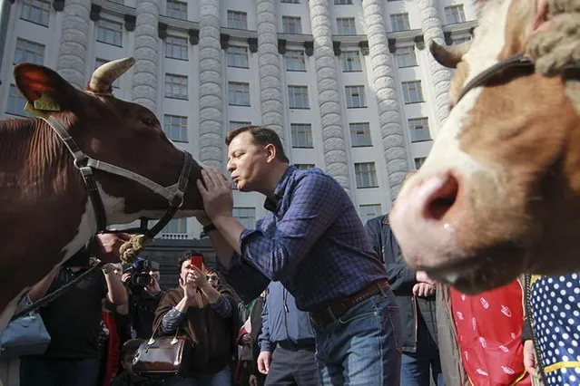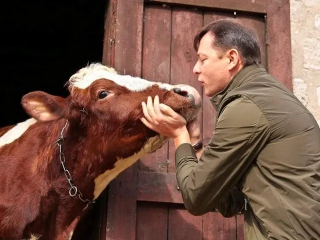 Лидер "Радикальной партии" Олег Ляшко не брезгует никем и ничем. Особенно любит коров.