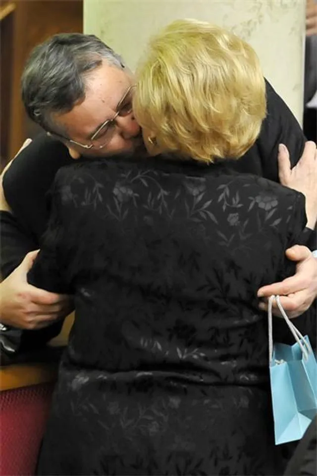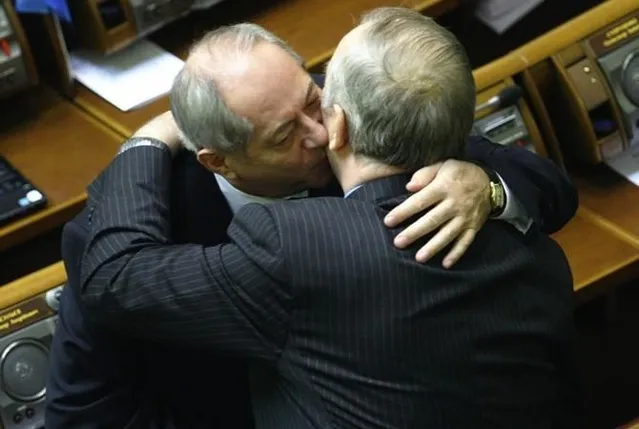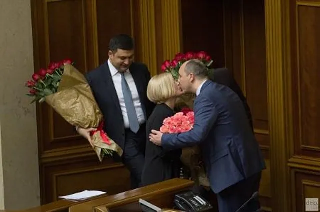 Фотографы поймали и поцелуи Анатолия Гриценко в стенах парламента.