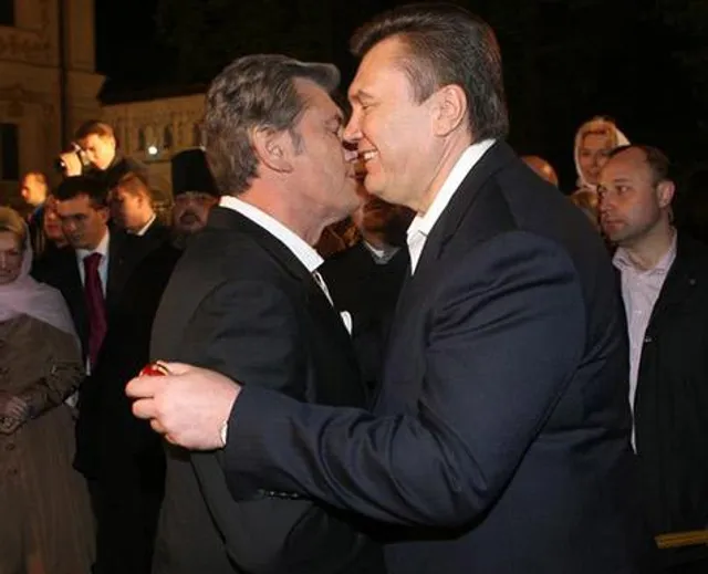 Бывшего беглого президента Виктора Януковича поймали в очень близких объятиях с Виктором Ющенко.