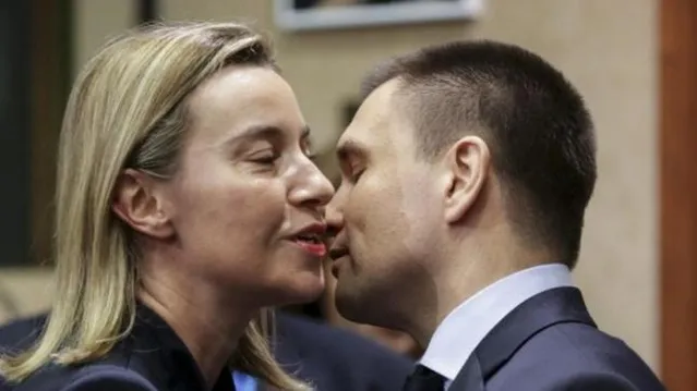 Глава МИД Украины Павел Климкин отличился поцелуем с главой дипломатии ЕС Федерикой Могерини.
