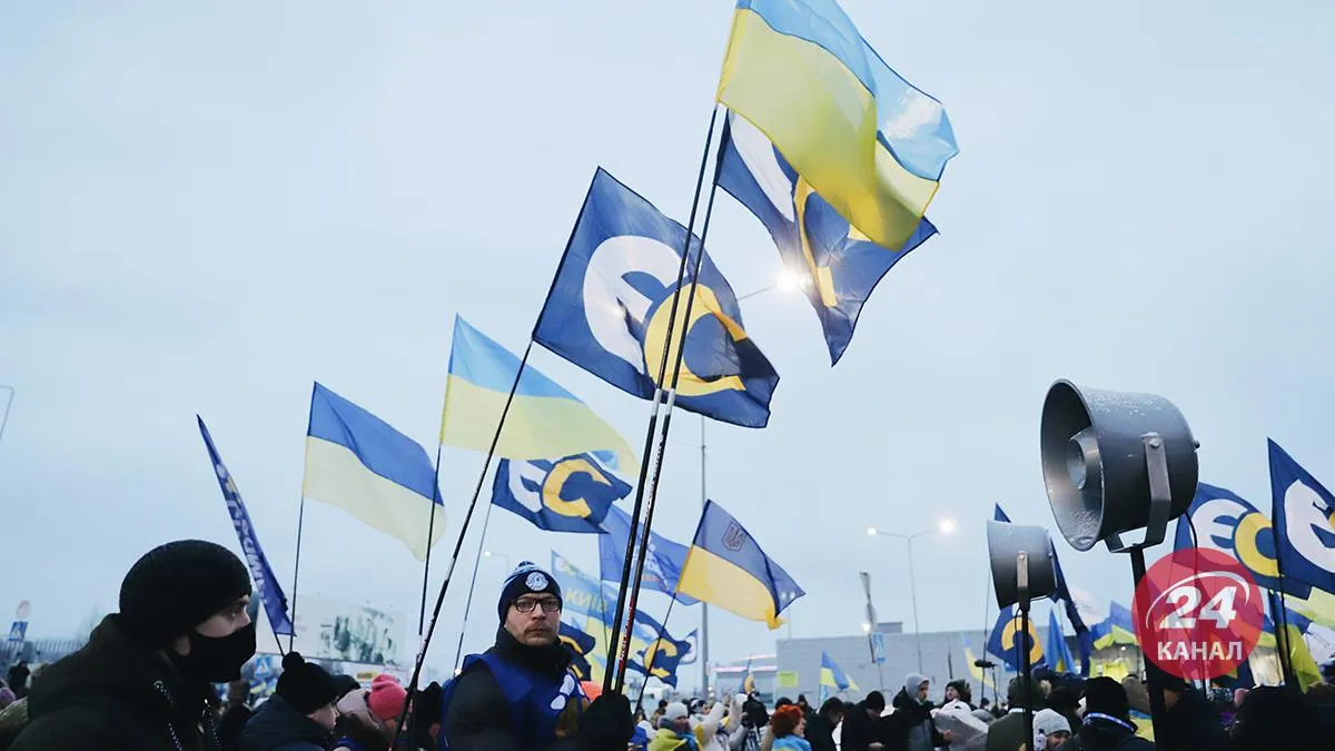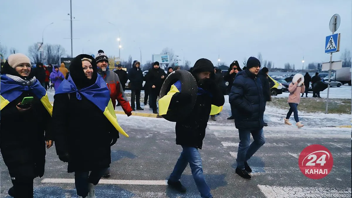 Сторонники Порошенко ожидают его прибытия в "Жулянах" / Фото Екатерины Соляр, 24 канал