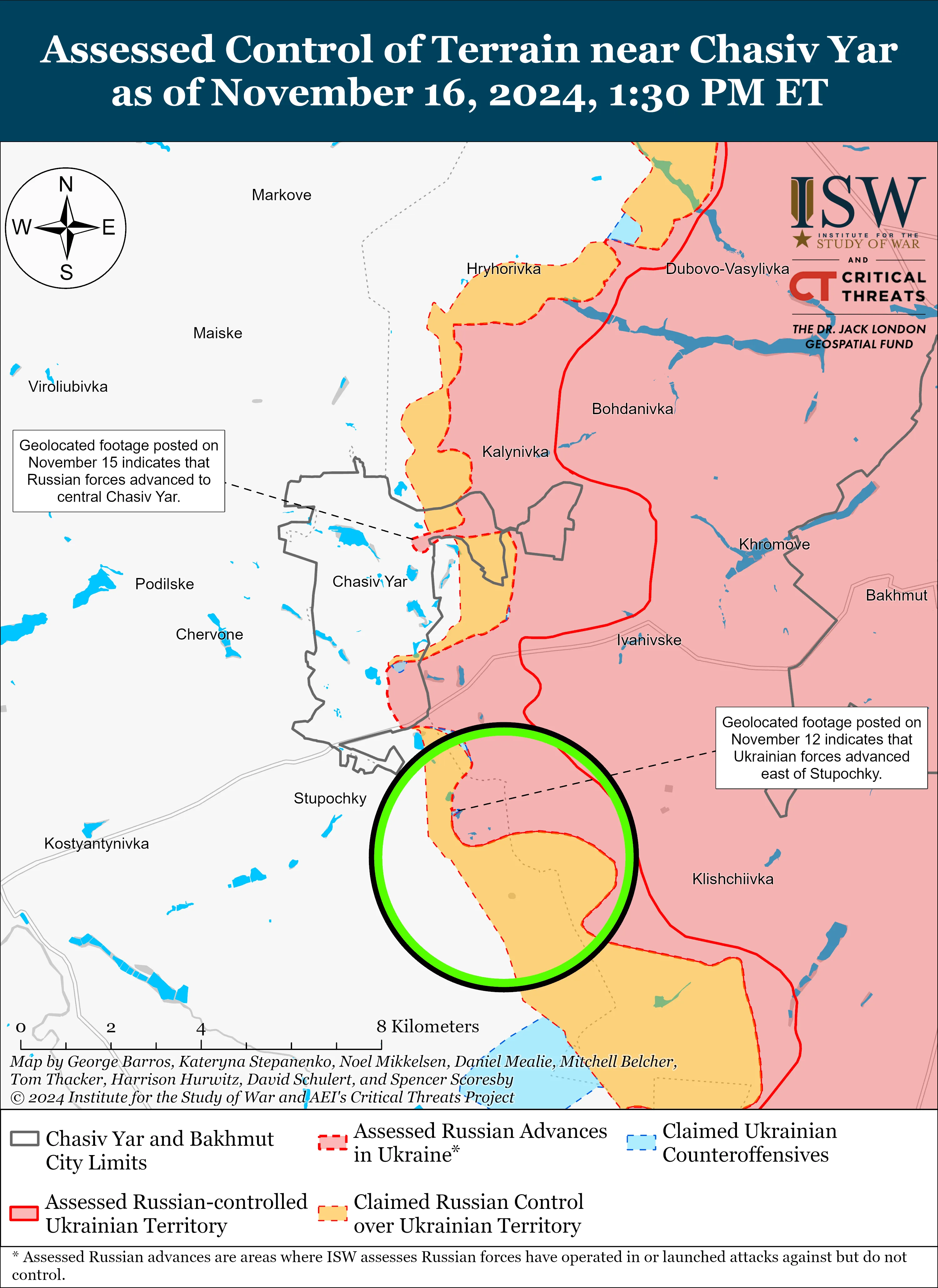 Эксперты ISW отмечают, что российская диверсионно-разведывательная группа 15 ноября осуществила ограниченное вторжение в Черниговскую область, но нет доказательств установления длительного присутствия там российских сил.