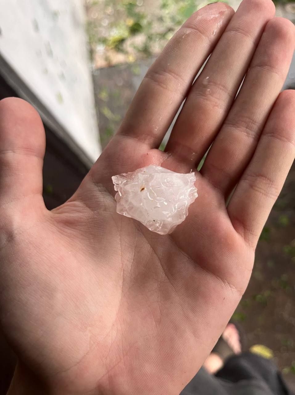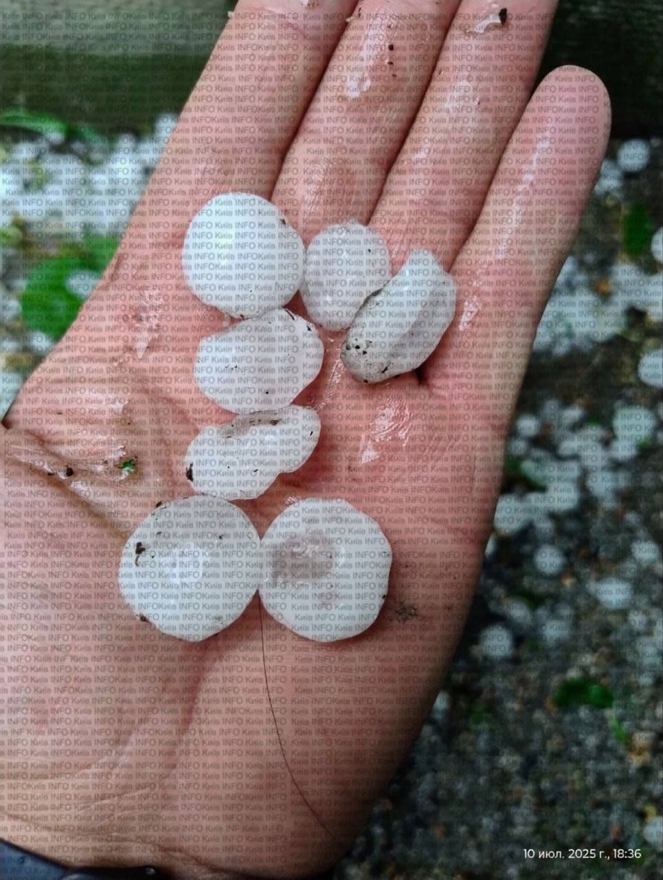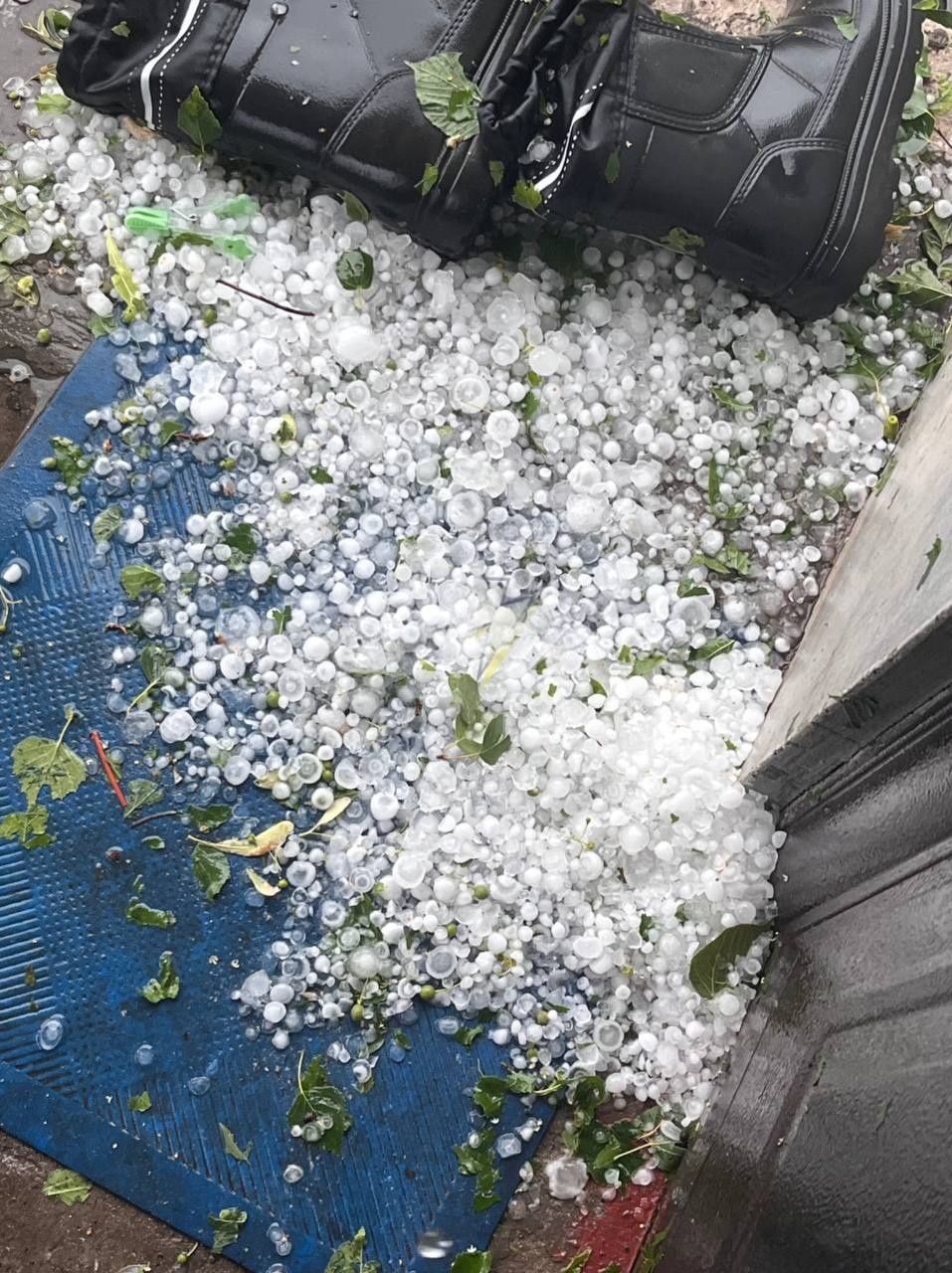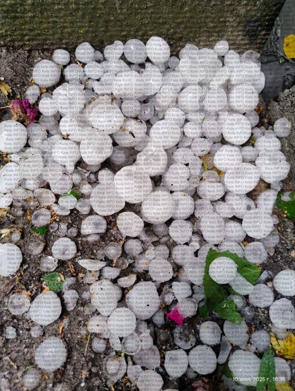 На фото можно увидеть, что град, который выпал в регионе, был размером с перепелиное яйцо. Также непогода принесла сильный ветер, который сносил все на своем пути и портил имущество граждан.
