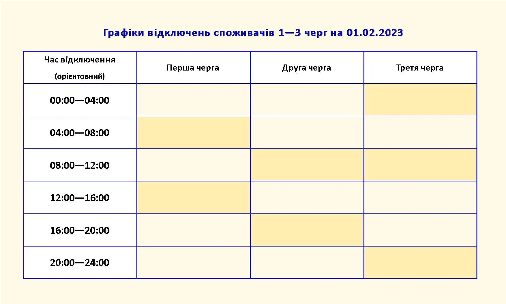 - С 02:00 до 05:00, 08:00 до 11:00, 15:00 до 17:00, 20:00 до 22:00 – очереди будут с электроснабжением