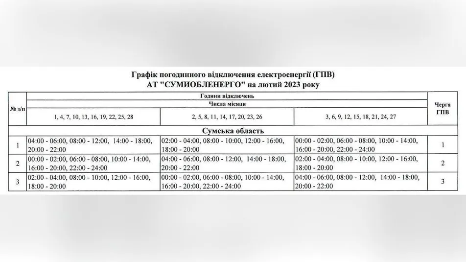 В Сумах и области обновили график почасовых отключений электроэнергии на февраль 2023 года.