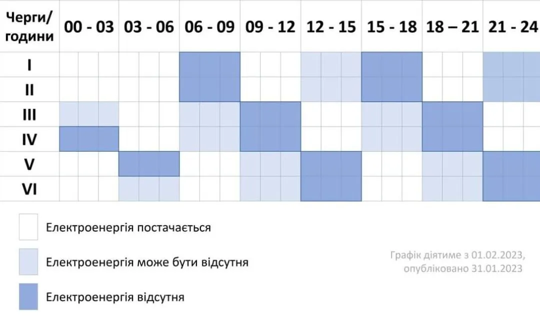С 1 по 4 февраля по Черкасской области продолжат работу красные графики. В ночное время (ориентировочно с 00:00 до 06:00) отключений по области не планируется.