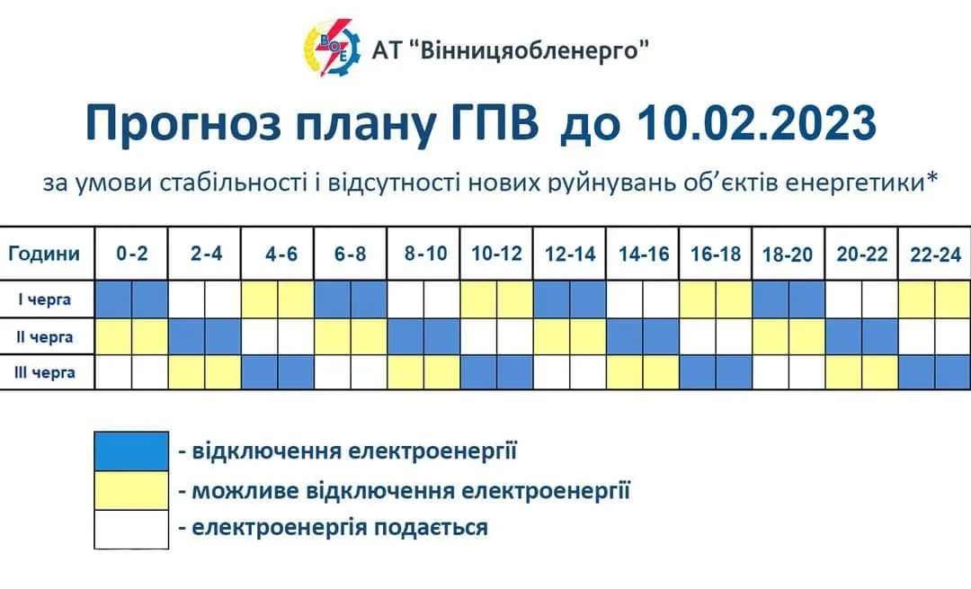 График отключения в Винницкой области