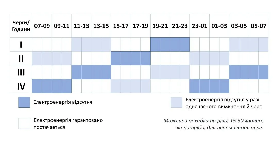 Предварительно будут выключать по 1 очереди. Но с 9:00 до 22:00 возможно одновременное отключение 2 очередей.
