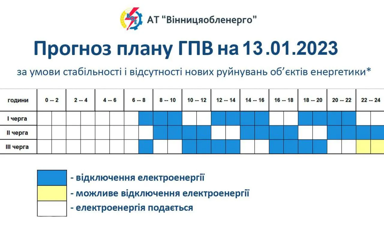 13 января во Львове и области будет действовать график почасовых отключений, учитывая доказанный лимит потребления от Укрэнерго.