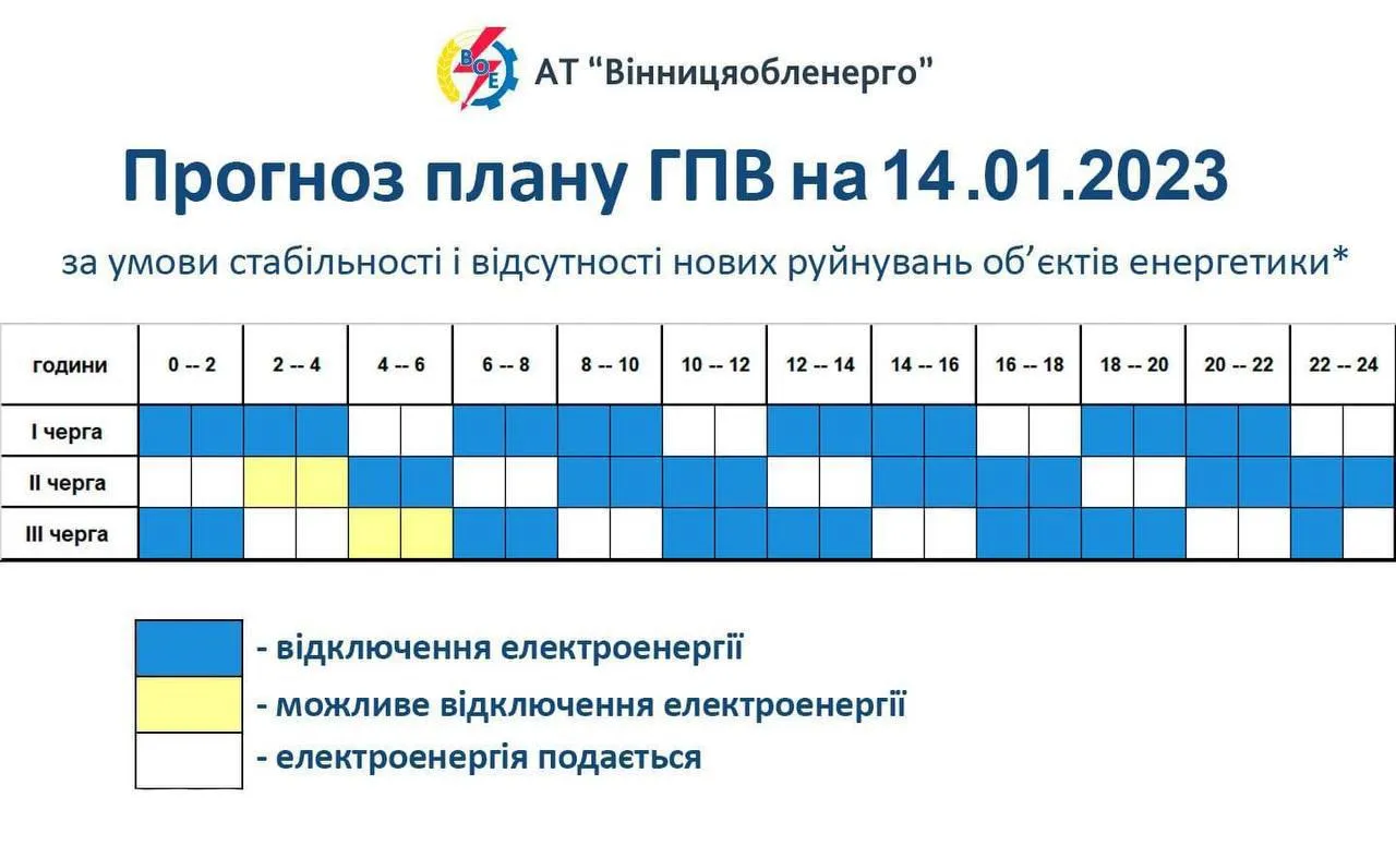Актуальный график отключения света в Виннице 14 января / Инфографика "Винницаоблэнерго"
