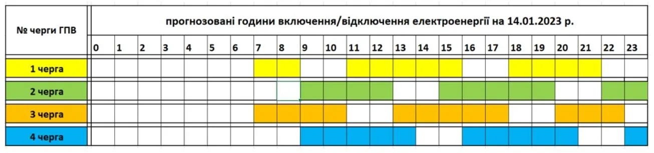 Закарпатьеоблэнерго обнародовало прогнозируемые часы отключения электроэнергии на 14 января.