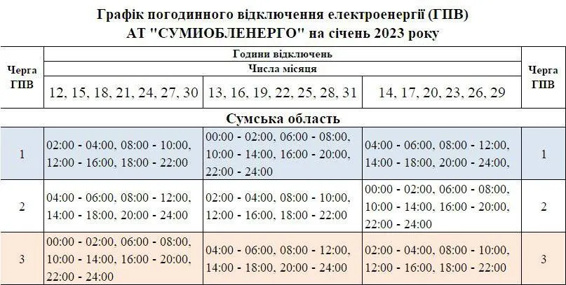 С 8:00 17 января график почасового отключения электроэнергии в Кропивницком такой: два часа электричество есть, два часа нет.