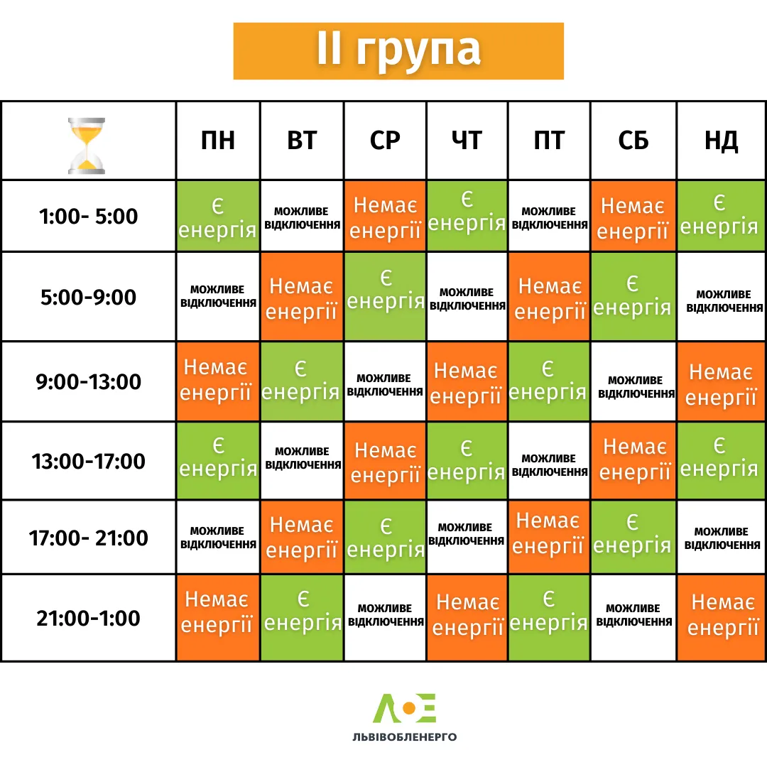 Вторая группа отключений / Инфографика Львовоблэнерго