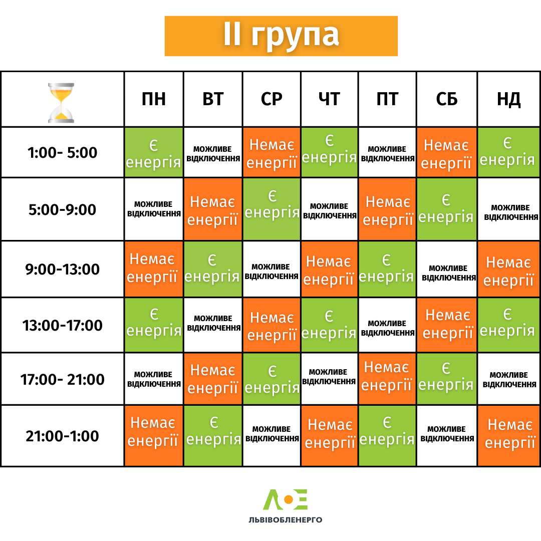 График отключений электроэнергии остается действующим. Дополнительно для вашего удобства разделили график по каждой группе в отдельности. Узнать, к какой группе относится ваш дом, можно на сайте "Львовоблэнерго" в разделе "Почему света нет".