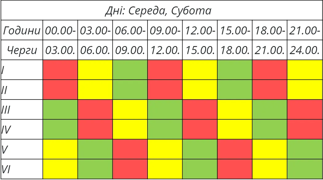 Заметим, что зеленым цветом обозначают подачу электроэнергии, желтым – возможные выключения, а красным – отключение света.