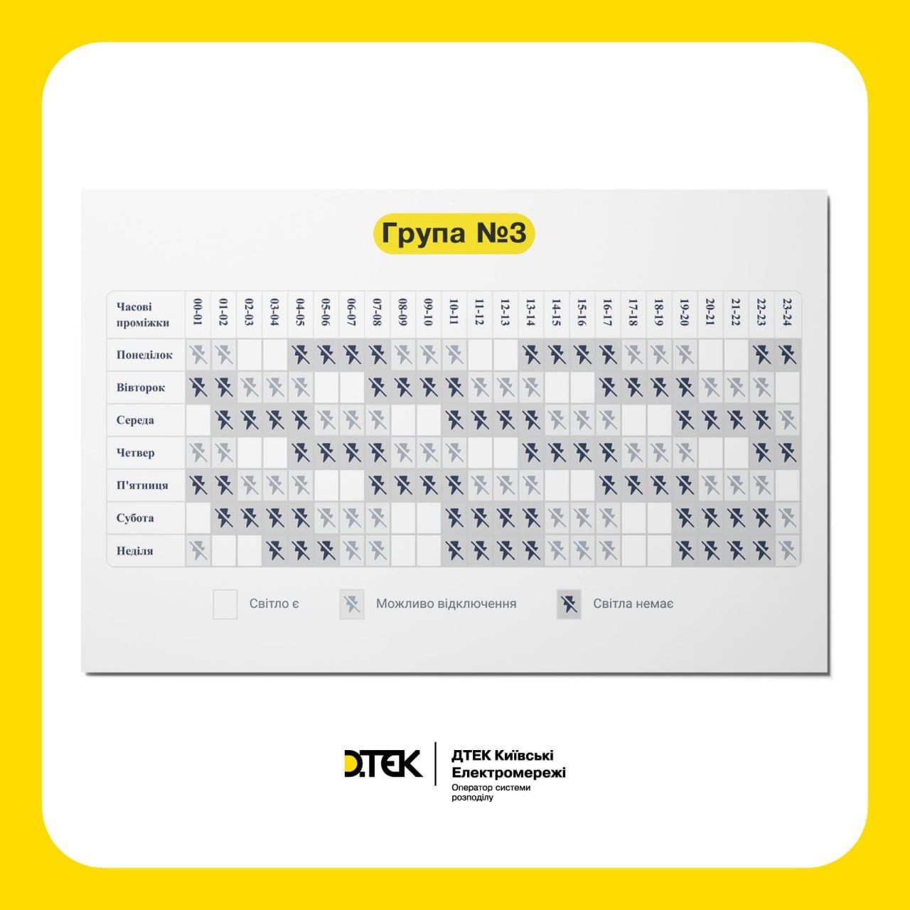 "Благодаря обновлению отключения в Киеве и Киевской области будут отличаться на час. Это решение принято по просьбе Укрэнерго, чтобы уменьшить нагрузку на энергосистему", – отметили в ДТЭК.