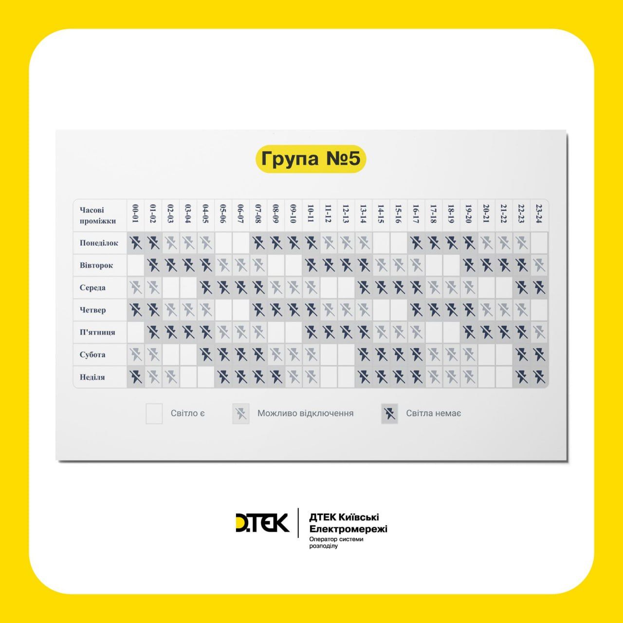 Об этом сообщает ДТЭК. В компании объясняют: если у пользователей отключение начиналось в 9:00, то с завтрашнего дня начнется в 10:00.