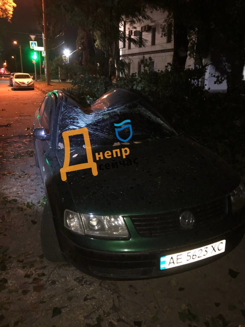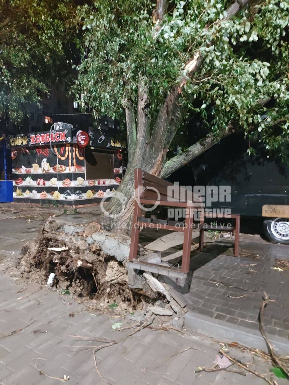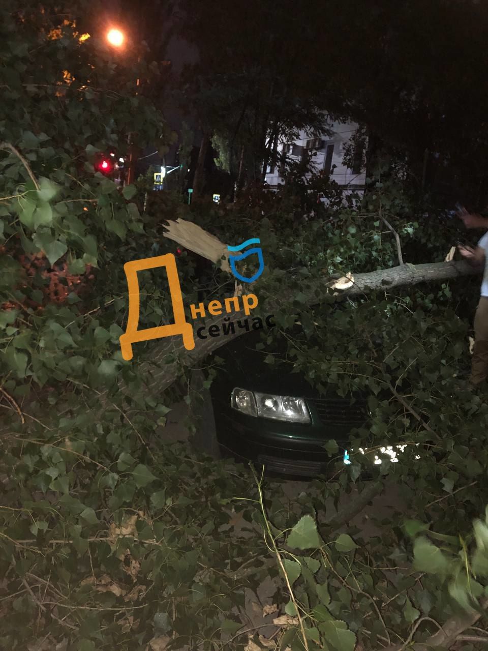 На левобережной части Днепра дерево свалилось на киоск с кофе. Возле Стадиона "Монтажник" ствол дерева свалился на автомобиль, в котором находились люди. Все они живы и здоровы.