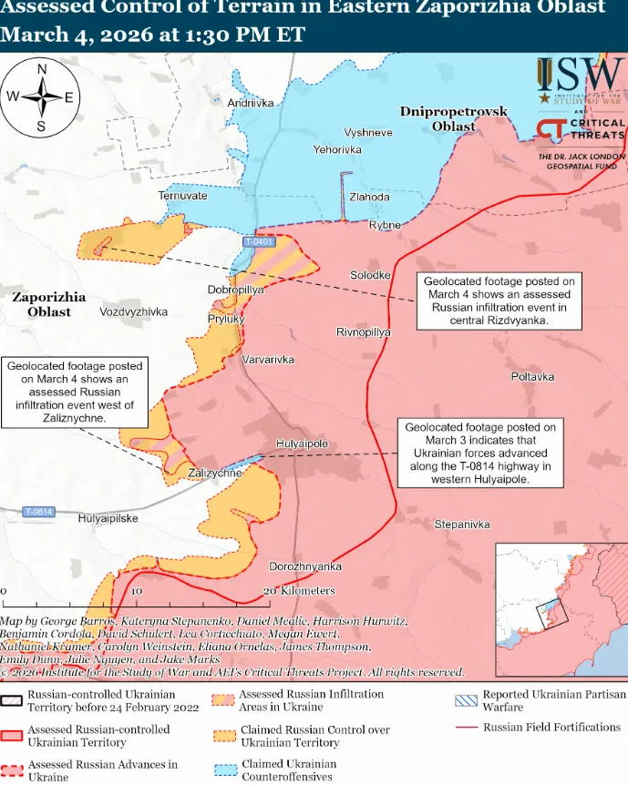 Где продвинулись украинские силы на Запорожье / Карта ISW