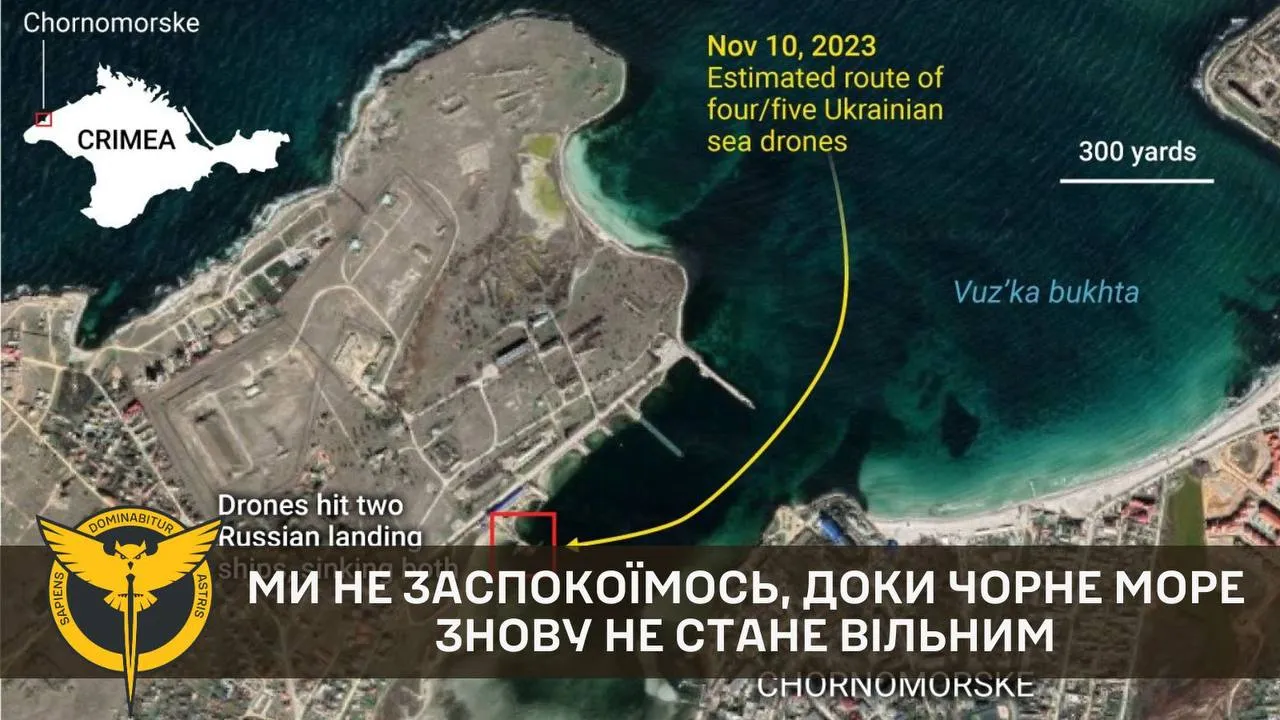 10 ноября 2023 года на рассвете украинские морские дроны вошли в порт. Они уверенно обошли противолодочные сетки, которые наставил враг. Оккупанты заметили дроны и даже начали пулеметный обстрел. Впрочем, помешать им не смогли.