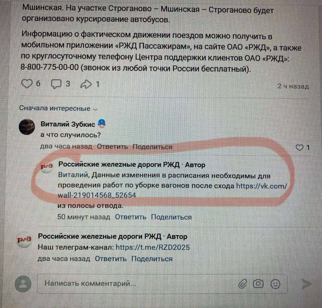 На данный момент грузовые и пассажирские поезда движутся в обход с задержками по времени на несколько часов. Из открытых источников стало известно, что на месте инцидента работают специальные службы, пытаются расчистить железнодорожные пути.