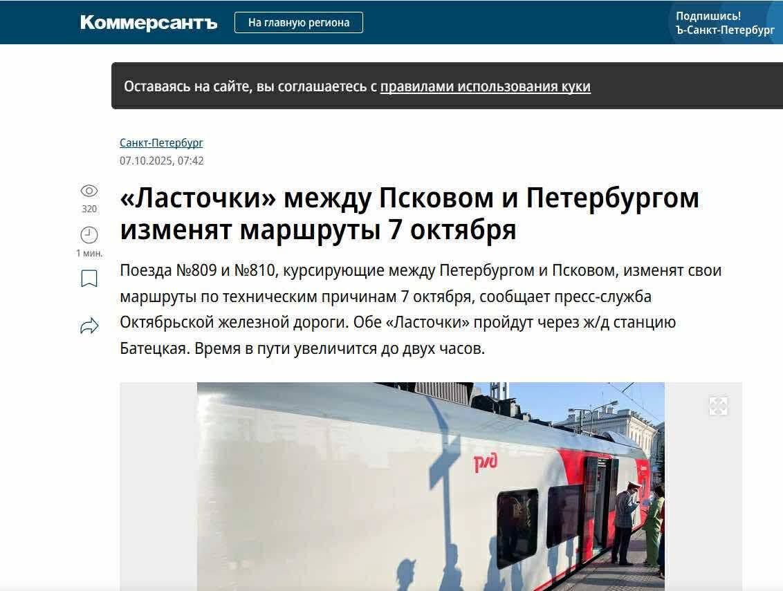 Благодаря спецоперации неизвестных партизан удалось парализовать движение поездов направления Санкт-Петербург – Псков. Сейчас движение поездов там, по данным российской железной дороги, приостановлено в связи с "техническими причинами".